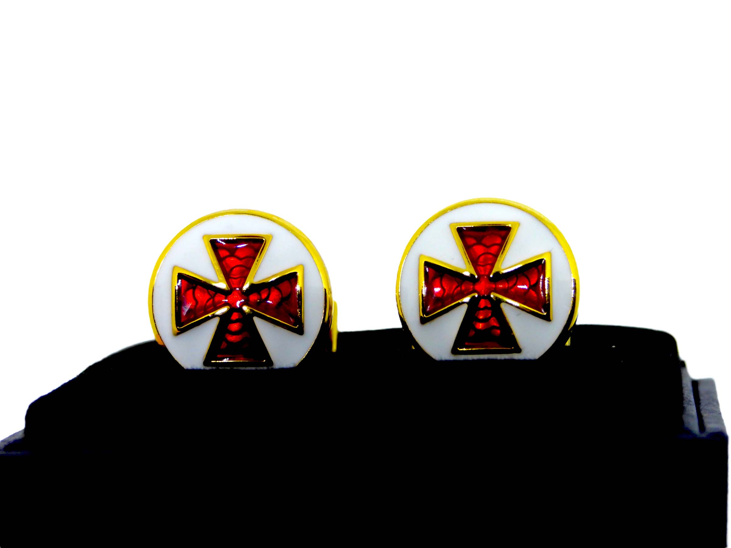 Dessa manschettknappar är tillverkade av högkvalitativ mässing och är inte bara mycket vackra utan utstrålar också en känsla av sofistikation och stil. Svenska Frimurarordens kors är sakkunnigt etsad i mässingen, och förgylld i djupröd emalj.